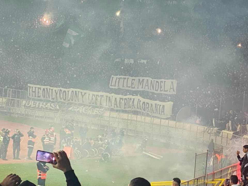 وقررت “الكورفا سود” الرد على تفاهة حفيد نيلسون مانديلا، برسالة رفعتها في المدرج أمام مولودية وجدة، كاتبة: “منديلا الصغير، المستعمرة الوحيدة المتبقية في إفريقيا هي أورانيا”.