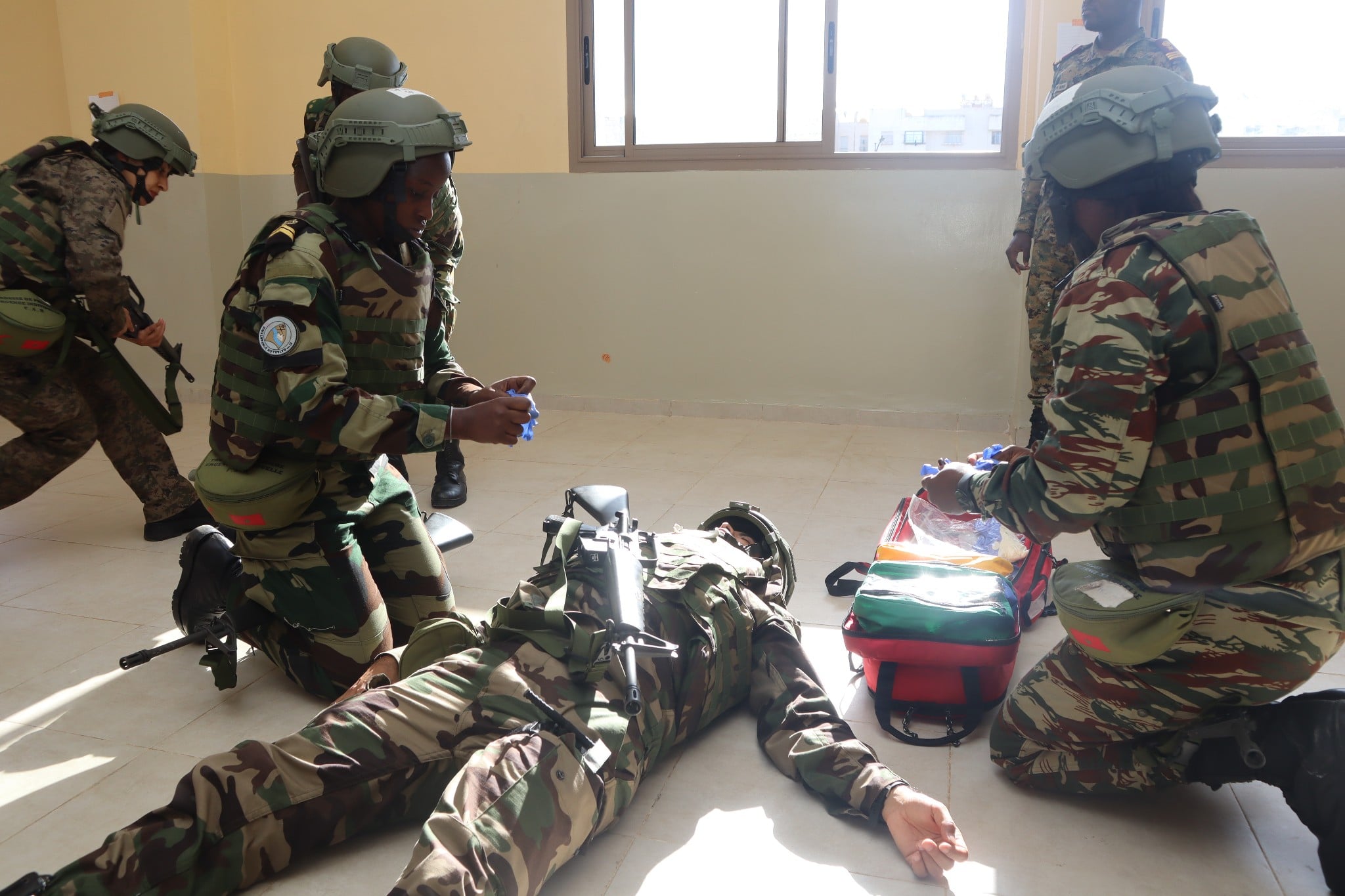 وتوزع البرنامج بين تدريب المدربين، ودروس أساسية، وحصص تحسيسية حول مخاطر المتفجرات، كما شمل التكوين محاور متقدمة في الإسعاف الميداني تحت النار، والإخلاء الطبي في ظروف القتال، والرعاية الفورية للحالات الحرجة، إضافة إلى تمارين تطبيقية ومحاكاة لبيئة عمليات واقعية أتاحت للمشاركين تعزيز مهاراتهم العملية والعمل المنسق داخل الفرق الطبية العسكرية.